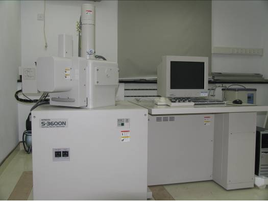 日立公司S-3600N扫描电子显微镜,主要用于微观形貌分析,可实现大型样品和多样品装载,也能实行低真空模式下绝缘样品的无镀层观察。最大分辨率可达3.0nm;放大倍率5—300,000倍;在3kV低加速电压时可达15nm的分辨率(高真空);最大样品尺寸直径254mm;最大样品厚度70mm;样品重量最大2kg。电镜配有EDAX公司GENESIS200XMS能谱仪,可检测铍Be以上的所有元素,是微区成分定性和定量分析的有力工具。扫描电镜可对金属、陶瓷、无机颜料等样品以及各种固体材料进行表面形貌的观察和样品表面组成的分析。