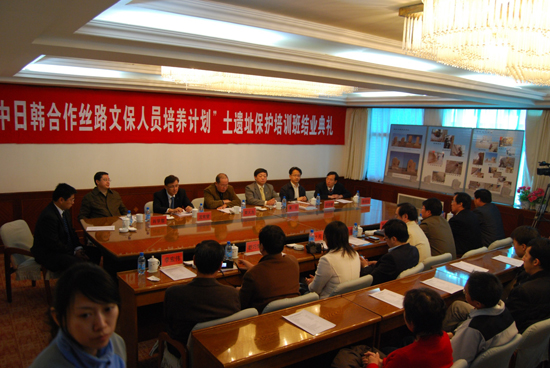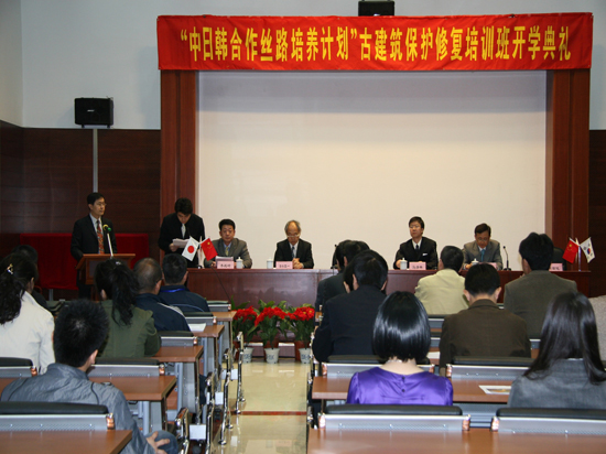 2、中日韩合作丝绸之路沿线文物?;ば薷醇际跞嗽迸嘌苹钅?br> 根据中日韩三方签署的项目计划,2006-2007年度已举办土遗址现场保护培训班,考古现场?;づ嘌蛋嗪椭秸疟;ば薷磁嘌蛋?。2009年举办“古建筑?;ば薷础焙汀安┪锕菁际酢迸嘌蛋?。