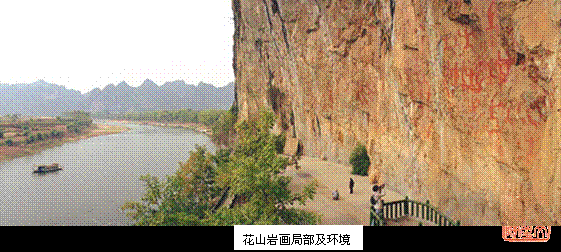 七、花山岩画?;すこ?br> 受广西壮族自治区文物局委托,我院于2008年9月起承担了花山岩画抢救性保护工程,至2009年底完成了岩画本体保存状况及存在病害调查,岩画粘结加固材料筛选及初步试验等工作。 2010年,完成了花山岩画第一期抢修保护工程设计,同时开展花山岩画颜料胶结材料分析和颜料层脱落及褪色病害原因、?;げ牧涎蟹⒑脱一;な匝榧澳屠匣阅懿馐?、石灰岩质文物注浆材料老化试验和后期材料性能评价等项研究。岩画防风化保护前期研究现场试验工作也已完成。