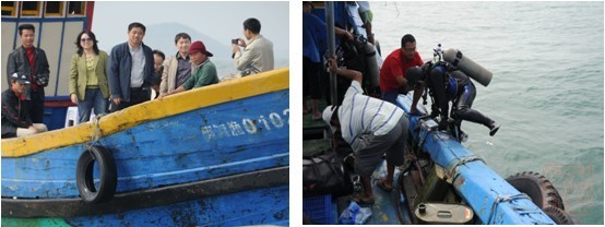 五、福建“半洋礁I号”沉船遗址重点调查 根据国家文物局部署,我院会同福建省文物局组织、协调海南、广东、浙江、青岛、国家博物馆等相关单位专业人员和设备,对“半洋礁I号”进行了为期40天的重点调查,克服了恶劣天气及水下能见度差等困难,基本摸清了沉船的埋藏状况,完成了调研工作报告。