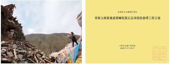 十一、青海玉树新寨嘉那嘛尼震后抢险维修工程 青海玉树地震后,我院立即组成了以杨新、永昕群为项目负责人的项目组赶赴玉树,克服了高原缺氧、生活条件差等困难,仅用不到10天时间完成了新寨嘉那嘛尼的勘察和维修设计构想(包括十三座塔、三座殿和嘛尼堆的勘察设计任务),抢险维修方案已获批准并完成了施工图设计,圆满完成了玉树灾后第一个文物保护工程的设计方案与施工图绘制;同时完成了《青海省玉树嘉那嘛呢?;す婊肺谋境醺?。