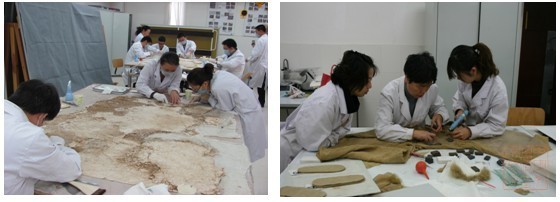 十六、文物修复培训项目 2010年,完成专业技术及岗前培训班6个,培训专业方向包括考古出土纺织品文物?;ば薷础⒐莶乇诨;ば薷础⒐莶厥饰奈锉;ば薷础⒖脊欧⒕蛳殖”;さ?,参加培训人员119人。培训期间,在专家与教师的指导下,学员修复文物106件(套)。同时举办大型学术研讨会3次,翻译、编辑、出版著作论文集5册。
