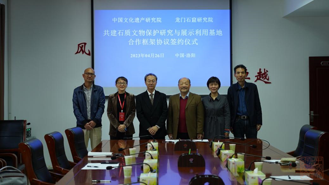 2023年4月26日上午,我院党委书记、院长李六三,科研综合管理处(外事处)负责人丁燕,石窟石刻(岩土)文物?;ば薷囱芯克涸鹑松勖魃甑热烁傲攀咔┦鸹睾献骺蚣苄?,并就具体合作事项开展专题座谈。龙门石窟研究院党组书记、院长史家珍,纪委书记孙蓓等人参加座谈与签约仪式。座谈签约仪式由龙门石窟研究院纪委书记孙蓓主持。 史家珍院长对李六三院长带队赴龙门石窟研究院,签署中国文化遗产研究院、龙门石窟研究院共建石质文物?;ぱ芯坑胝故纠没睾献骺蚣苄榍┰家鞘奖硎救攘一队K硎?,龙门石窟是我国典型的文物遗存,塑造了中国石刻造型艺术的巅峰,具有独特的历史、艺术价值。希望基于双方深厚合作基础,以签署合作协议为契机,拓展在文化遗产价值挖掘与展示利用、预防性?;?、保护修复关键技术研究、学科建设、学术交流与人才培养等全域性合作模式,将龙门石窟打造为世界文化遗产保护利用与管理的优秀案例。 李六三院长首先介绍了文研院以打造文物领域国家队为目标定位,以“立足北京、辐射全国、走向世界”为发展战略,不断拓展业务领域。 李六三院长在回顾双方友好合作的历史后表示,文研院将坚持“开门办院”原则,愿与龙门石窟研究院强强联合、各取所长,通过签署基地合作协议,深入开展文物价值挖掘、科研项目研究、人才培养等,深化双方合作和传承双方历史友谊。面向未来,双方在科创中心建成后,共享科技资源与科研成果,携手推动龙门石窟保护利用,促进中华优秀文化传承发展。