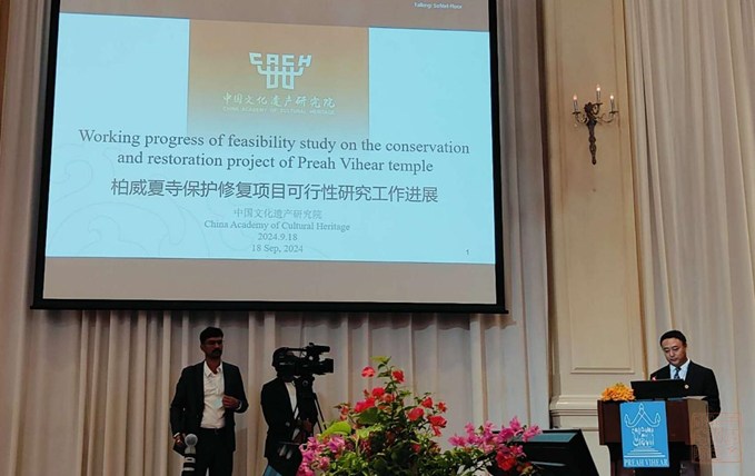 2024年9月18日,柬埔寨柏威夏寺国际协调委员会(ICC-PV)第9届技术会议在暹粒召开,中国驻柬埔寨大使馆驻暹粒领事办公室主任卢奇志,我院副院长李向东,文化遗产?;す屎献髦行睦蠲魉伞⒋匏Ы懿位??;嵘?,李向东副院长代表中国文化遗产研究院作大会发言。 中国驻柬埔寨大使馆驻暹粒领事办公室主任卢奇志作为柏威夏寺国际协调委员会(ICC-PV)中国主席国代表作开场致辞并主持会议。他表示在过去的半年中,在柬方的大力支持和配合下,中方专家团队完成了可行性研究考察工作,在此基础上,中柬双方签署了关于可行性研究工作的会谈纪要,为下一步工作开展奠定坚实基础。中方有信心为柏威夏寺?;ば薷聪钅抗毕字泄腔酆椭泄α俊?br> 我院副院长李向东作大会发言,就我院可行性研究工作进展进行了汇报。他在发言中表示我院于今年5月组建了针对柏威夏寺可行性研究的多学科专业考察工作组,来柬完成初步岩土地质勘察、文物建筑本体病害勘察、石质文物残损调查、考古调查、工程造价调研等工作,并对病害进行初步评估分析??疾炱诩洌ぷ髯榈玫搅思矸降拇罅χС趾团浜?,顺利完成了现场的工作。下一步,我院将持续推进柏威夏寺相关工作,积极推动中柬文化遗产保护交流合作。 此外,与会的各国工作队对正在柏威夏寺和贡开遗址开展的工作分别进行汇报,柏威夏寺国际协调委员会(ICC-PV)特设专家组就汇报内容提出专家组建议,为各工作队下一步工作提供指导。 目前,我院已于2024年5月19日至6月2日派出柏威夏寺可行性研究考察工作组,顺利完成现场考察工作。