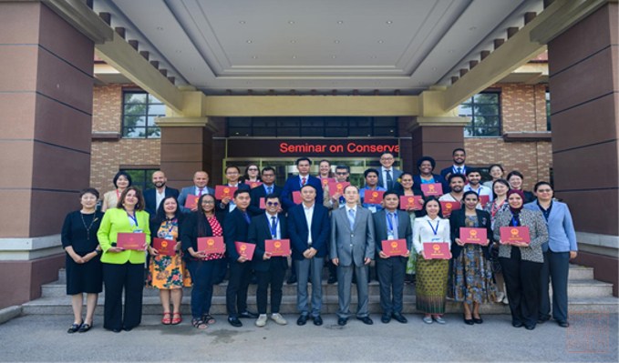 李向东副院长做项目总结发言,回顾了研修班的丰富内容。本次研修班课程涵盖中国国情概况、世界文化遗产管理、遗址博物馆建设、丝绸之路考古新发现等内容,介绍了中国在联合申遗、文化遗产?;だ糜氪械确矫娴某晒Π咐途?。组织学员们参观了八达岭长城、故宫博物院等世界文化遗产地和多家博物馆,前往景德镇深入体验陶瓷文化传承与创新等,收获颇丰。李向东副院长表达了对未来与各国开展文化遗产保护相关合作的期待。 来自柬埔寨的学员Sanpiseth KIM代表全体学员向中国政府和组织单位表示衷心感谢。他认为本次研修班为大家提供了良好的学习文化遗产保护与传承领域专业知识和经验的机会,为建立良好而广泛的合作网络搭建了平台,期待未来能再次相聚,深化交流与合作。 来自埃及的学员代表Clair Nassan Lamei Malak分享了自己的感悟。她表示此次研修班让自己有幸亲眼见证了中国在文化遗产?;ち煊虻淖吭焦ぷ鳎哟葱碌牟┪锕菔导?、完善的政策框架到系统的教育策略,中国不仅在守护历史,更在为文化遗产构建充满活力的未来。尤其令她印象深刻的是科技与人工智能在遗产保护中的应用,如 3D 建模、AI 辅助监测等,这些创新方法为她回国后的工作提供了诸多可借鉴的思路。在实地考察中,景德镇之行让她深受触动,传统工艺与教育、社区的融合,生动诠释了如何让文化遗产在当代焕发活力。她还提到,文化体验活动通过共享的人文体验弥合了文化隔阂,而研修班工作人员的专业与热忱也让她倍感温暖。最后她表示,这次经历不仅让她收获了知识,更结识了新的友谊,为继续投身文化遗产?;すぷ髯⑷肓饲看蠖Α?br> 来自斐济的学员代表Kuruwale Inise Waseitotoya向中国政府表示感谢。她表示本次研修班让大家深刻体会了?;の幕挪闹匾浴Mü行薨嗟难?,深入了解了中国文化遗产?;さ木俅?,在与各国学员的交流中收获了珍贵友谊。 张海龙副处长代表主办方向全体学员致以诚挚问候,并对中国文化遗产研究院的精心组织表示感谢。他表示中国作为世界上最大的发展中国家,将继续加强与其他发展中国家的政治协商与对话,增进战略互信,深化相互支持与协作。中国人民愿在南南合作框架下,尽己所能提供帮助,分享知识与经验,与其他发展中国家共同应对挑战与?;止菇ǔ志煤推?、共同繁荣的和谐世界。 张海龙副处长和李向东副院长共同为学员们颁发了结业证书和纪念礼品,见证大家的收获与成长。 本次研修班为期14天,来自亚洲、欧洲、非洲、中美洲和大洋洲共7个国家的23名政府官员及专业人员参加。研修班通过专题讲座、实地调研及案例研讨等形式,不仅让各国学员系统学习了中国文化遗产保护的知识与经验,更搭建了跨文化交流的桥梁,为深化“一带一路”国家在文化遗产?;ち煊虻慕涣饔牒献魈峁┲Γ贫死辔幕挪谋;び氪泄毕琢α?。