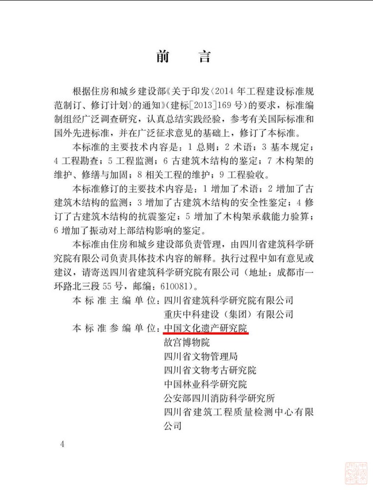 我院作为第一参编单位编制的《古建筑木结构维护与加固技术标准》国家标准(编号为GB/T50165—2020)正式发布。该标准自2020年7月1日起实施,原国家标准《古建筑木结构维护与加固技术规范》(GB50165—92)同时废止。 本标准的主要技术内容包括:总则;术语;基本规定;工程勘查;工程监测;古建筑木结构的鉴定;木构架的维护、修缮与加固;相关工程的维护;工程验收等。本次标准修订增加了术语、古建筑木结构的监测、安全性鉴定;修订了古建筑木结构的抗震鉴定;增加了木构架承载能力验算、振动对上部结构影响的鉴定等内容。 该项国家标准的发布对我国古建筑木结构维护与加固专业化实践具有重要的实践指导意义。