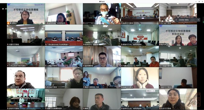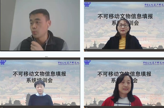 2021年11月15日,中国文化遗产研究院组织召开“不可移动文物基础信息录入系统”全国线上培训会。国家文物局有关处室、项目组成员,以及来自全国31个省、自治区、直辖市文物局(文化和旅游厅/局)以及新疆生产建设兵团文物局的近300人通过腾讯会议方式参加了会议?;嵋橛芍泄幕挪芯吭何奈锉;すこ趟彼?、项目负责人丁燕主持。