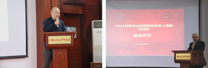 2021年3月27日—4月2日,由国家文物局委托中国文化遗产研究院举办的“考古发掘项目负责人”培训班在职业技能学训测云平台(线上)顺利开展。4月2日,国家文物局副局长宋新潮在中国文化遗产研究院为全体学员作了《如何做好考古领队》的直播授课,课程中高度概括了中国考古事业的发展历程和成就,同时总结了中国考古工作的经验,结合新时期党和国家对考古工作的重视和要求,对新任考古发掘项目负责人的职责和使命进行了明确,并且用自身的感受强调了脚踏实地的工作作风在考古工作中的重要性。国家文物局文物?;び肟脊潘舅境ゃ蒲橇?、国家文物局文物保护与考古司考古处处长张凌、中国文化遗产研究院院长柴晓明、中国文化遗产研究院党委书记解冰、国家文物局考古研究中心主任唐炜、中国文化遗产研究院副院长乔云飞等在现场听课并出席结业仪式。