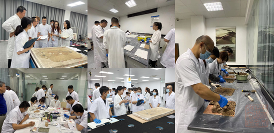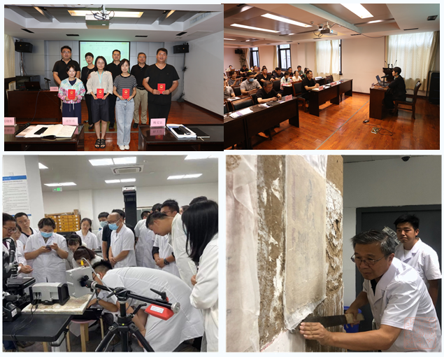 7月28日,历时15天,由国家文物局委托,中国文化遗产研究院承办的“2021年度壁画文物?;ば薷醇际跖嘌蛋唷痹谏挛骼凡┪锕菟忱嵋?。陕西历史博物馆?;ば薷床恐魅温分怯拢泄幕挪芯吭航逃嘌笛г焊苯涛癯ふ畔瘸鱿私嵋祷惚ɑ狒呓嵋狄鞘?。 结业汇报上,学员代表就壁画保存现状调查与价值评估、科学检测和病害机理分析、典型唐墓壁画制作工艺及揭取方法的模拟实验、保护修复技术和修复实验进行了四个专题汇报。陕西历史博物馆研究馆员杨文宗对学员汇报进行了点评,他表示本次培训时间短任务重,学员们既完成了理论与实践的学习,又完成了馆藏壁画从揭取至?;ば薷慈鞒痰牟僮骱妥ㄌ庋芯炕惚ǎ迪至酥泻弦坏呐嘌的勘?。路智勇主任指出本次培训课程设计合理,内容全面,充分体现了国家文物局科研基地和人才培训基地合作的优势。陕西历史博物馆将持续支持馆藏壁画文物保护修复人才的培养,同时将针对文物修复的重点难点问题与中国文化遗产研究院开展更深层次的探讨与合作。 张晓彤副教务长对本次培训班作了总结,她强调通过教育培训实现壁画文物保护修复人才培养与使用融合、研究与应用融合、学科融合,突破边界、守正创新,是本次培训的核心所在。国家文物局的支持和陕西历史博物馆丰富馆藏壁画资源及雄厚科研、师资力量,是本次培训成功举办的良好保障。此次培训既传播了壁画文物?;ば薷醋钚卵芯砍晒图际醴椒ǎ质迪至私萄Ш凸こ淌导幕ザ?,完成了一次馆藏壁画保护修复综合实践及研究方法模式的成功探索,使受训者的综合能力得到了提升,为今后继续开展壁画?;ば薷醋ㄒ等瞬排嘌拖喙匮芯看戳诵判暮陀缕?。 20名学员分组完成了《苏思勖墓壁画保护修复方案》4份,提交工作日志4份、手绘及CAD病害图各4份,清洗完成苏思勖墓壁画4幅(B临244、B临247、B临252、B临254),完成壁画临摹绘制20幅。全体学员均通过考核,获得结业证书。