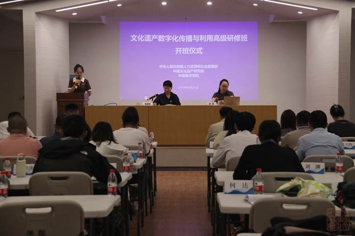 2024年6月25日,由人力资源和社会保障部主办,国家文物局申请,中国文化遗产研究院承办,中国美术学院协办的文化遗产数字化传播与利用高级研修班在杭州开班。中国美术学院手工艺术学院副院长彭倩、我院文博教育科技培训学院教务长张晓彤出席开班仪式。