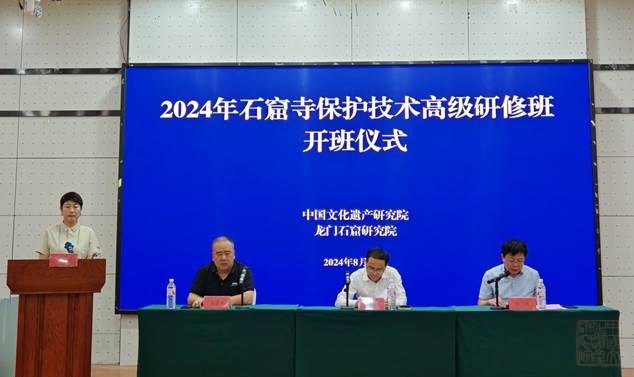 2024年8月28日,由中国文化遗产研究院主办,龙门石窟研究院协办的2024年石窟寺?;ぜ际醺呒堆行薨嘣诼逖艨唷V泄幕挪芯吭涸撼ぁ⒌澄笔榧橇杳?,龙门石窟研究院党委书记余杰、副院长陈建平出席开班仪式。