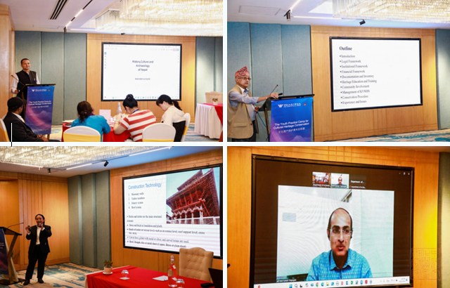 2024年10月20日至26日,经国家文物局批准,由中国文化遗产研究院与尼泊尔考古局联合主办的“文化遗产保护青年实践营”在尼泊尔加德满都成功举办。本次实践营以“纪念威尼斯宪章60周年——亚洲文化遗产保护的探索与实践”为主题,邀请了来自中尼两国的12位文化遗产领域专家、20余名来自中国、尼泊尔、马来西亚、伊朗的学员,共同回顾与总结威尼斯宪章在亚洲地区的实践应用,探讨文化遗产?;さ男吕砟?、新方法。 此次实践营理论授课部分分为尼泊尔专题与中国专题,邀请中尼文化遗产?;ち煊蜃曳窒碓谥泄湍岵炊牟煌尘跋拢幕挪;さ睦砺塾胧导椤?br> 在尼泊尔专题中,尼泊尔考古局首席考古官Ram Bahadur Kunwar、文化专家 Bhim Prasad Nepal、工程师Shova Maharjan、印度艾哈迈达巴德大学遗产管理中心 Neel Kamal Chapagai 教授分别开展讲座,全面介绍了尼泊尔的历史、文化与考古发现、文化遗产?;び牍芾淼姆⒄估獭⒛岵炊旅斫ㄖ墓ひ沼虢ㄔ焯氐?,以及威尼斯宪章在国际文物保护中的应用与发展等。